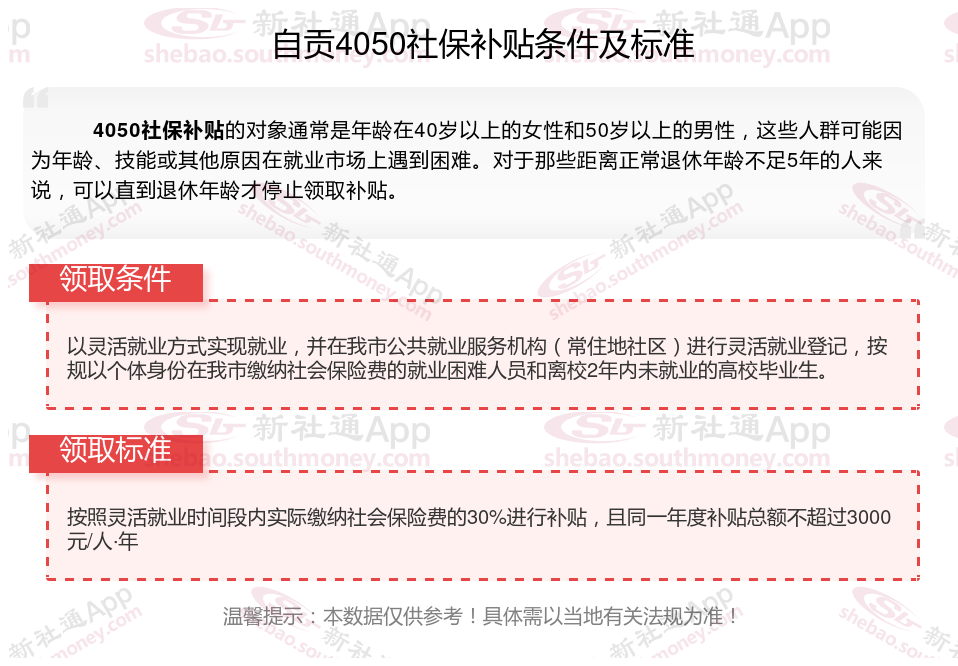 多数地区只有4050人员可以领取社保补贴,现在扩大了补贴对象及范围,通过就业困难人员认证,实现灵活就业,并且自己缴纳职工社保的灵活就业人员,一般都能申请灵活就业社保补贴。那么自贡4050灵活就业社保补贴标准是多少钱?自贡4050社保补贴条件是什么?接下来随新社通APP小编了解一下最新资讯。