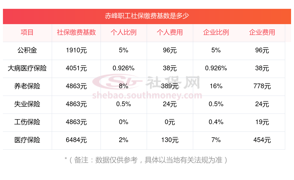 赤峰社保缴纳情况是怎样的?一起和社保网-APP一起来看看下面的明细表: