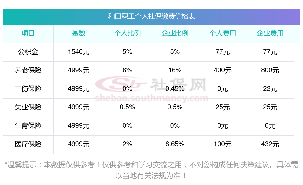 2024年和田社保缴费多少钱?下表是2023-2024年和田社保费用明细参考,新社通app-社保缴费查询工具提供的最新数据如下: