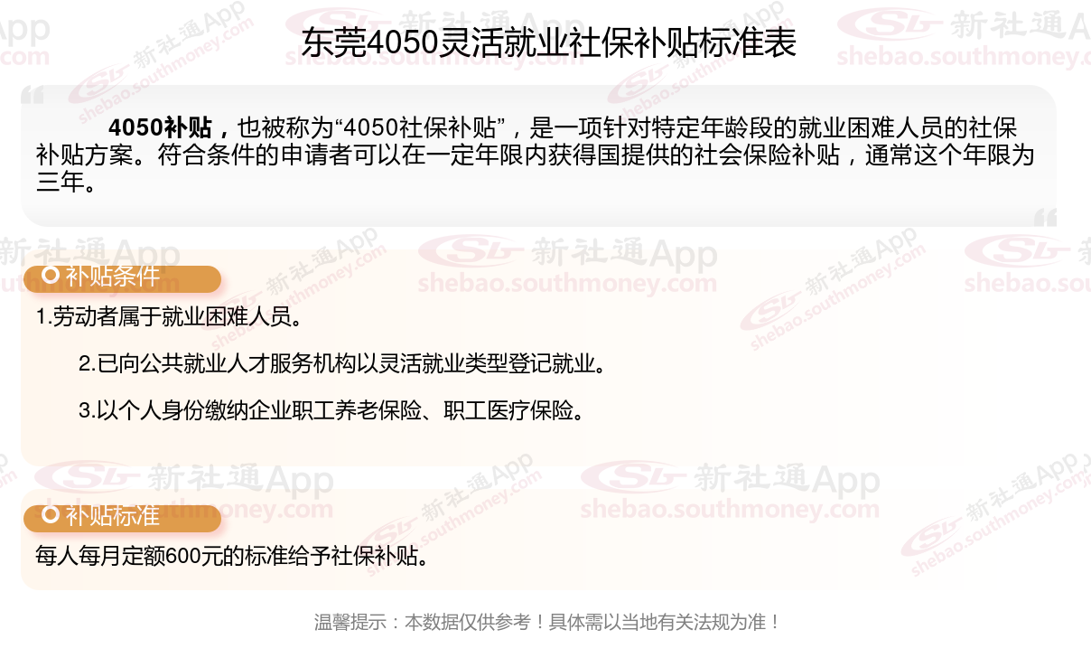 2024东莞4050补贴主要针对的是年龄在40岁以上的女性和50岁以上的男性,这些人群通常因为年龄较大而面临就业困难。