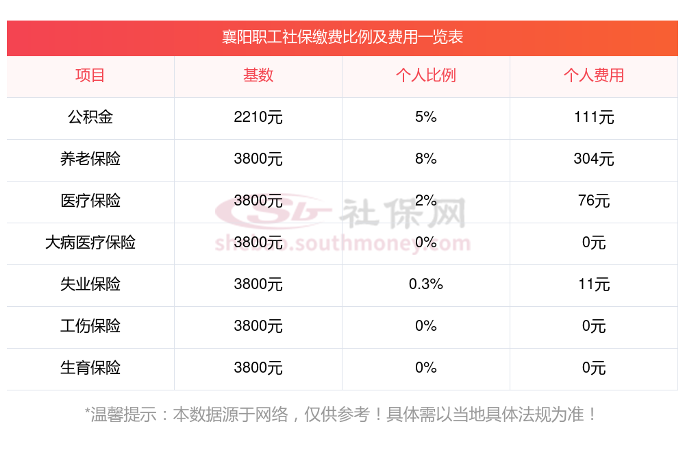 襄阳社保缴纳情况是怎样的?一起和新社-app一起来看看下面的明细表: