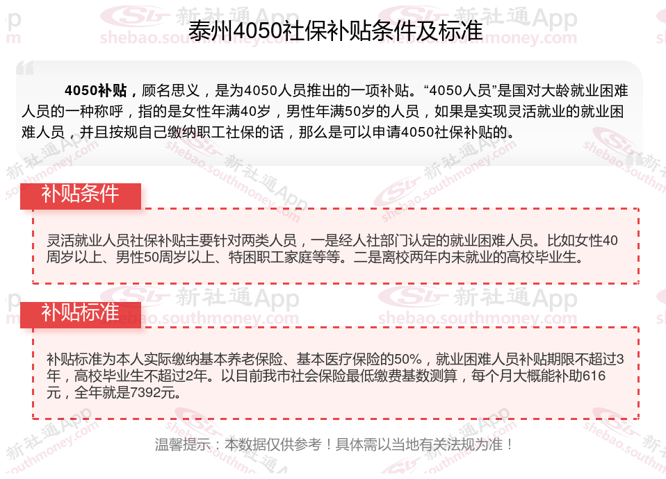 一、2023-2024年泰州4050社保补贴标准及条件,最新如下