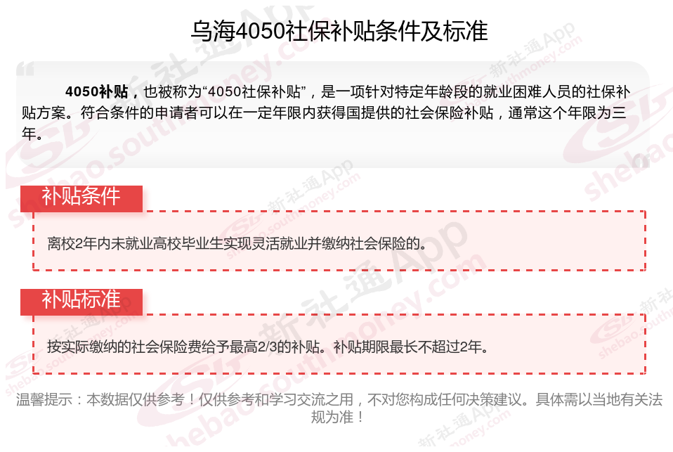 一、2023-2024年乌海4050社保补贴标准及条件,最新如下