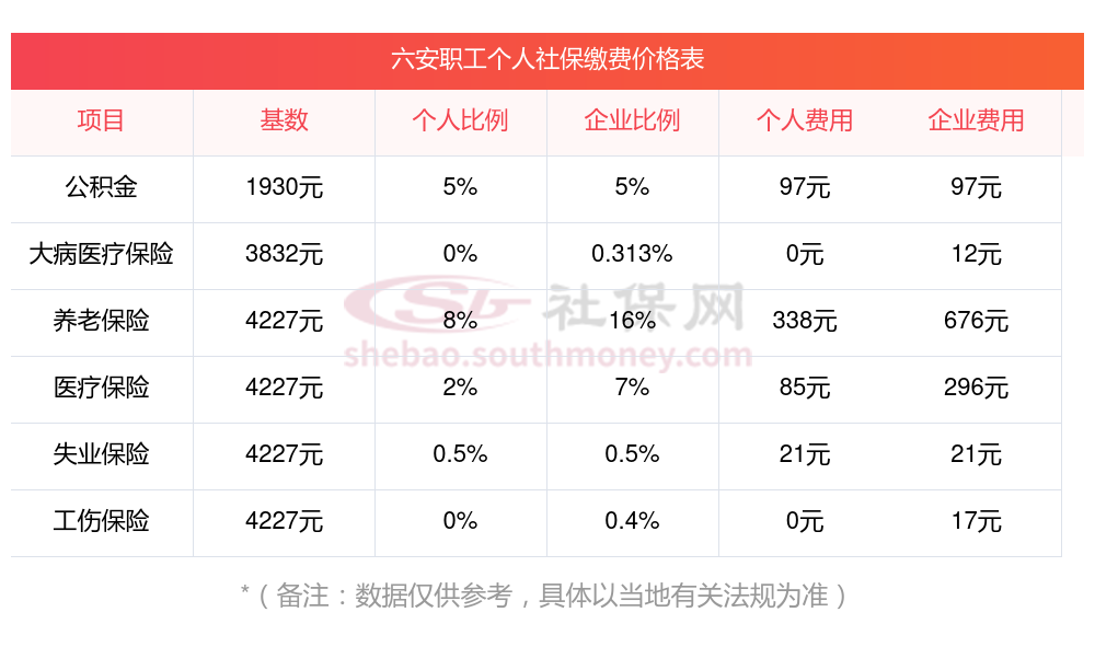 六安社保缴纳情况是怎样的?一起和新社君一起来看看下面的明细表:
