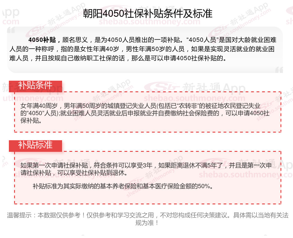 一、朝阳4050社保补贴标准及条件2023-2024年