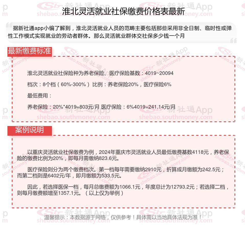 一、2024年淮北灵活就业社保缴费标准表 淮北灵活就业社保多少钱一个月?
