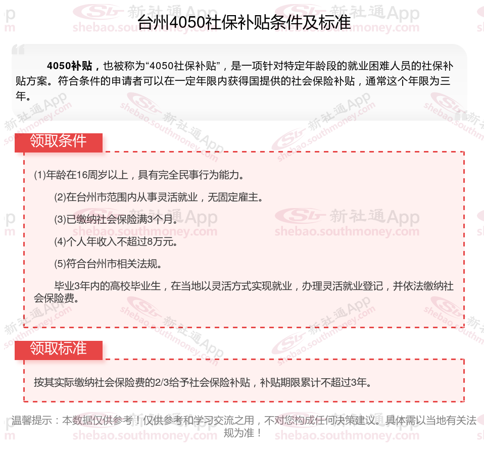 2024台州灵活就业4050社保补贴是一项面向特定年龄段的就业困难人群的社会保险补贴。