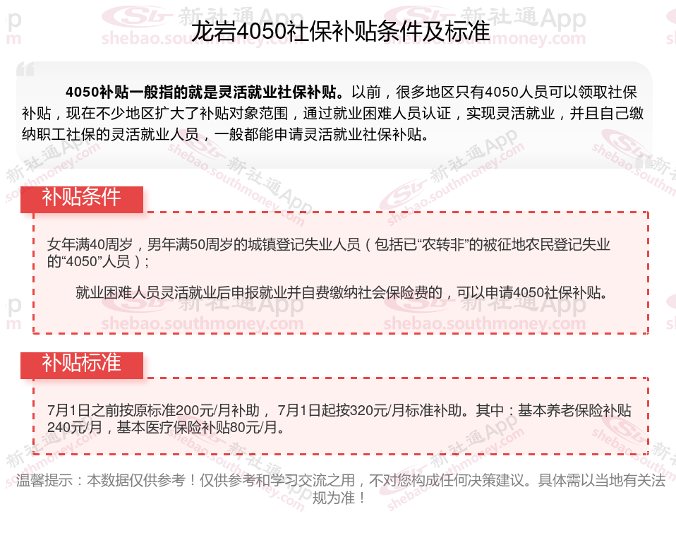 2024龙岩灵活就业4050社保补贴是一项面向特定年龄段的就业困难人群的社会保险补贴。
