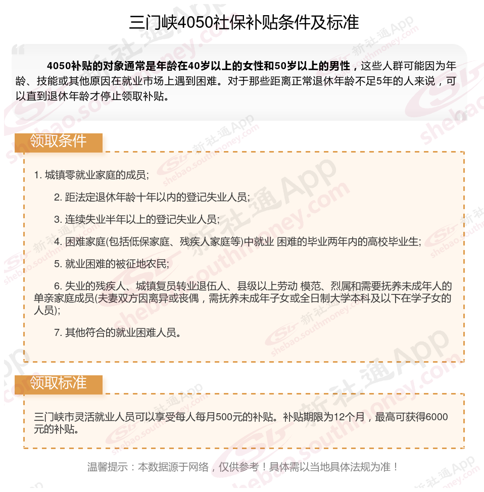二、三门峡4050社保补贴标准及条件2023-2024年
