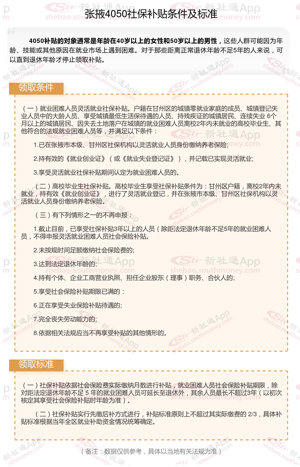 2024张掖4050补贴主要针对的是年龄在40岁以上的女性和50岁以上的男性,这些人群通常因为年龄较大而面临就业困难。