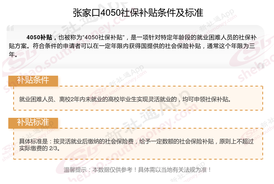 2024张家口灵活就业4050社保补贴是一项面向特定年龄段的就业困难人群的社会保险补贴。