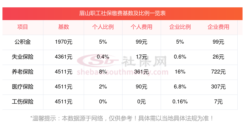眉山社保缴纳比例公司和个人按照以下方式计算?: