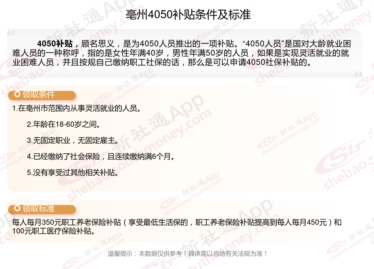 二、亳州4050社保补贴标准及条件2023-2024年
