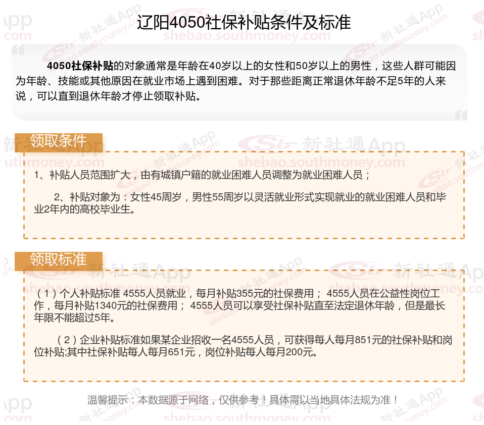 一、辽阳4050社保补贴标准及条件2023-2024年
