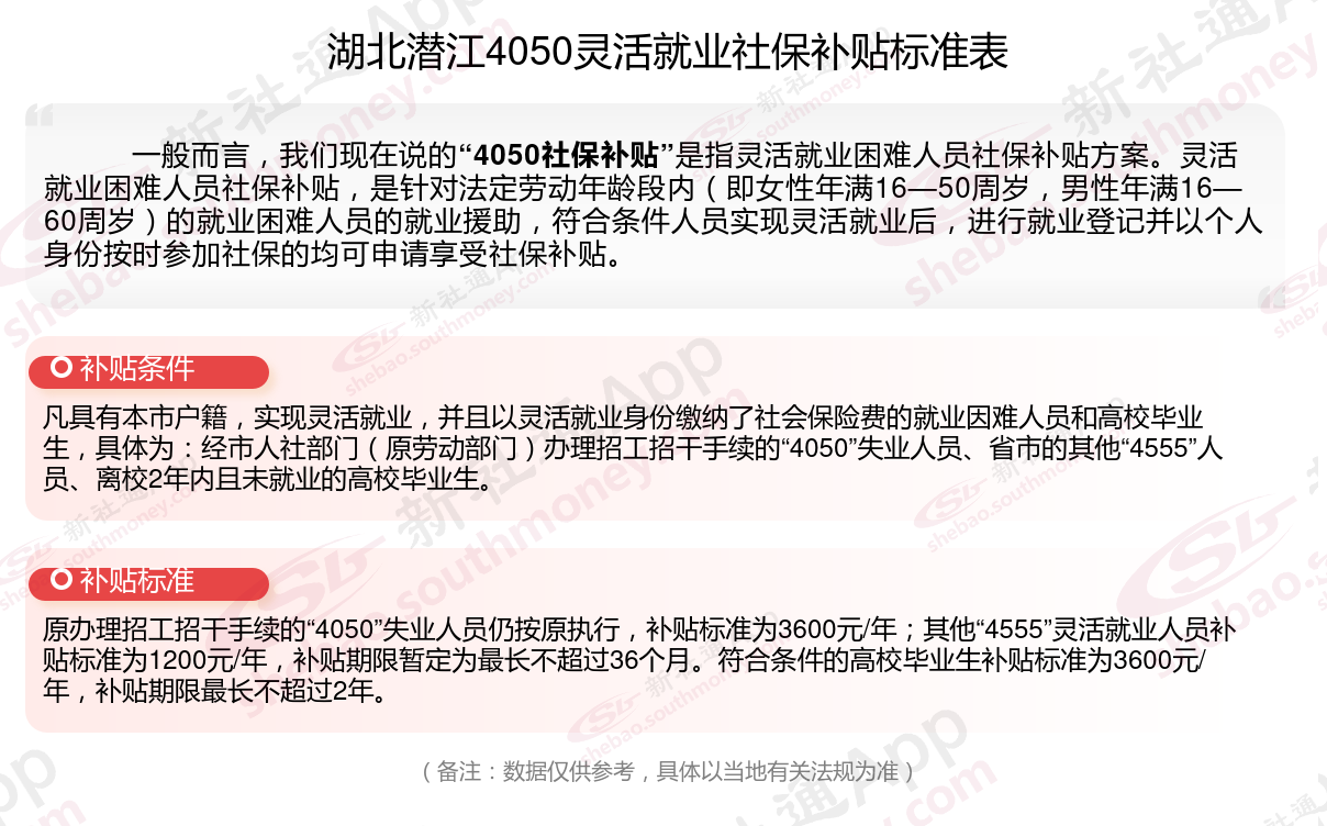 一、2023-2024年湖北潜江灵活就业4050社保补贴标准和条件是什么