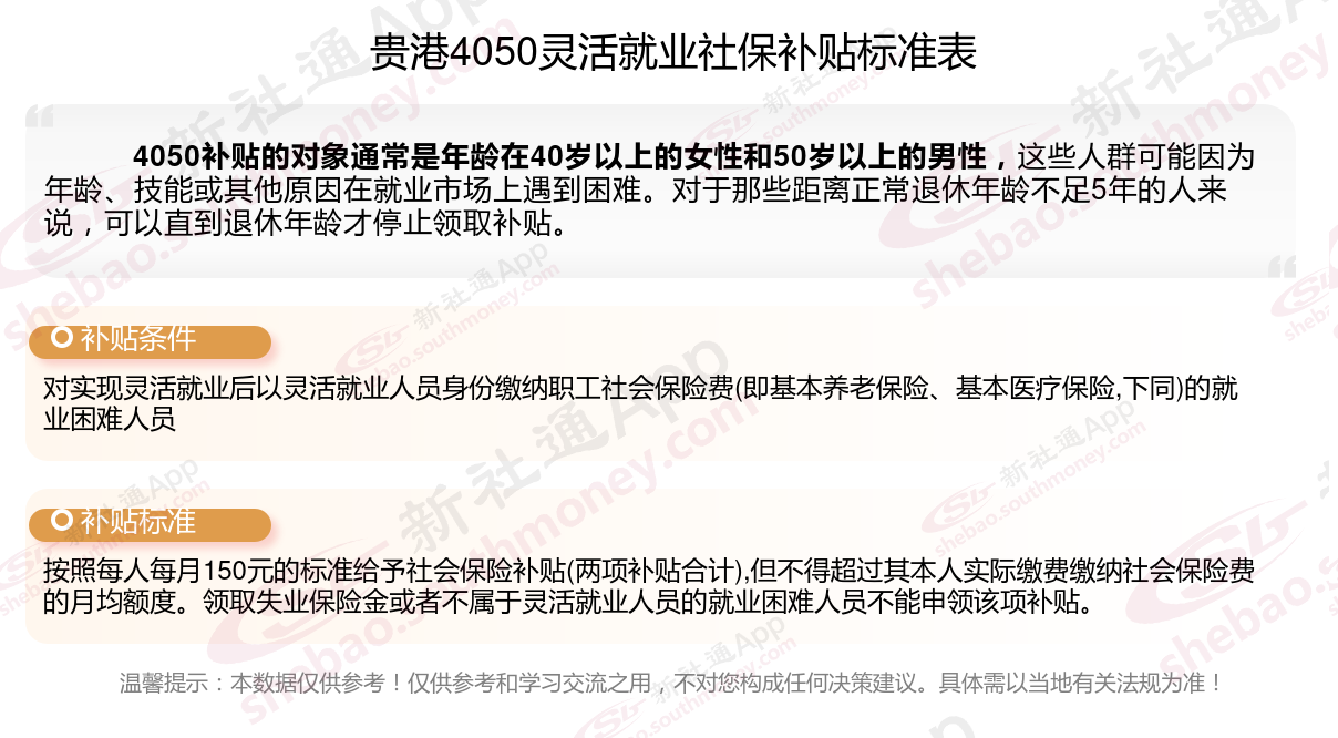 2024贵港灵活就业4050社保补贴是一项面向特定年龄段的就业困难人群的社会保险补贴。