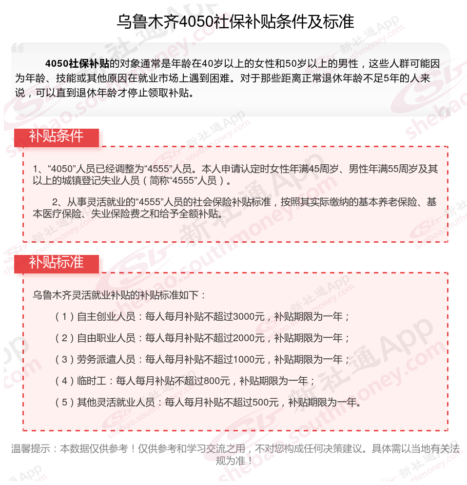 一、2023-2024年乌鲁木齐4050社保补贴标准及条件,最新如下