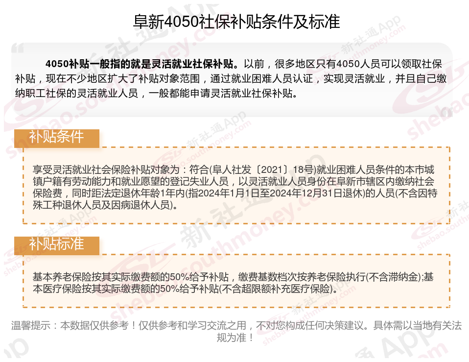 一、2023-2024年阜新4050社保补贴标准,最新领取条件来了