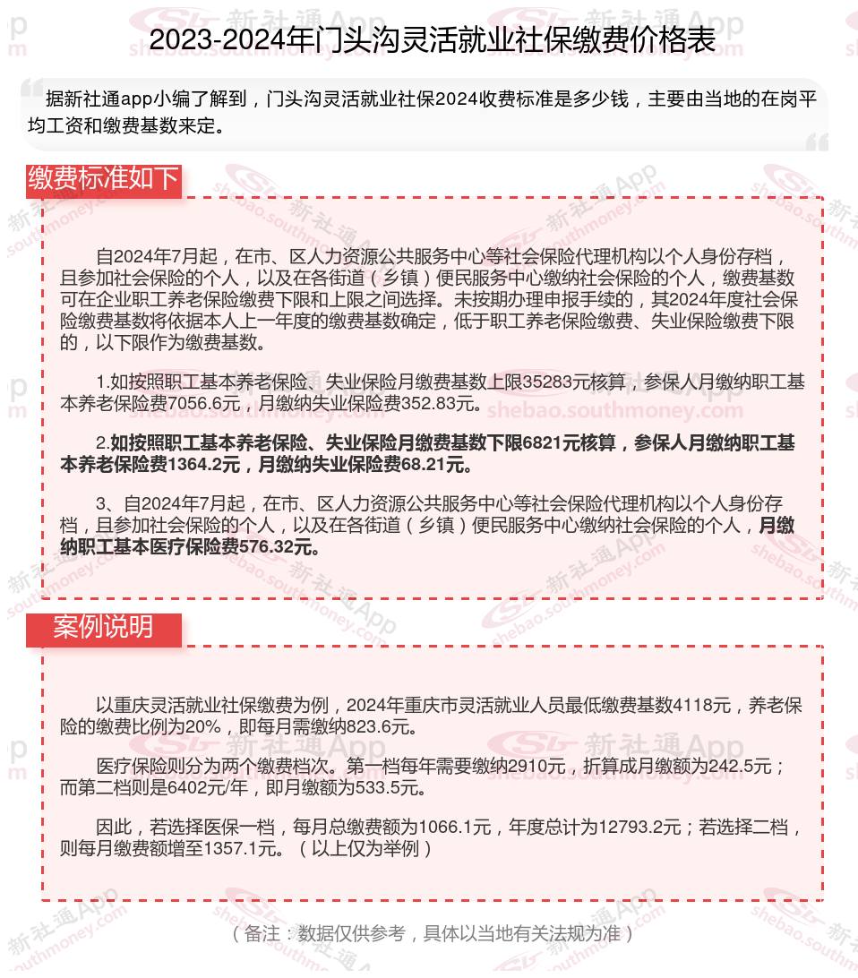 二、门头沟2024年灵活就业社保缴费基数、比例最新消息
