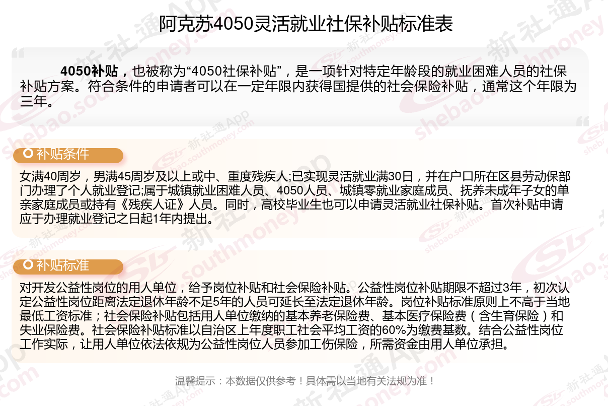 二、阿克苏4050社保补贴标准及条件2023-2024年,最新如下