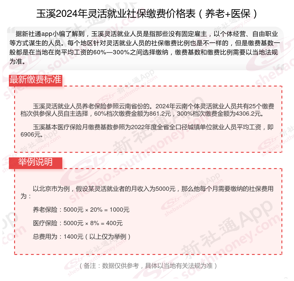 二、玉溪2024-2025年灵活就业社保缴费基数、比例最新消息