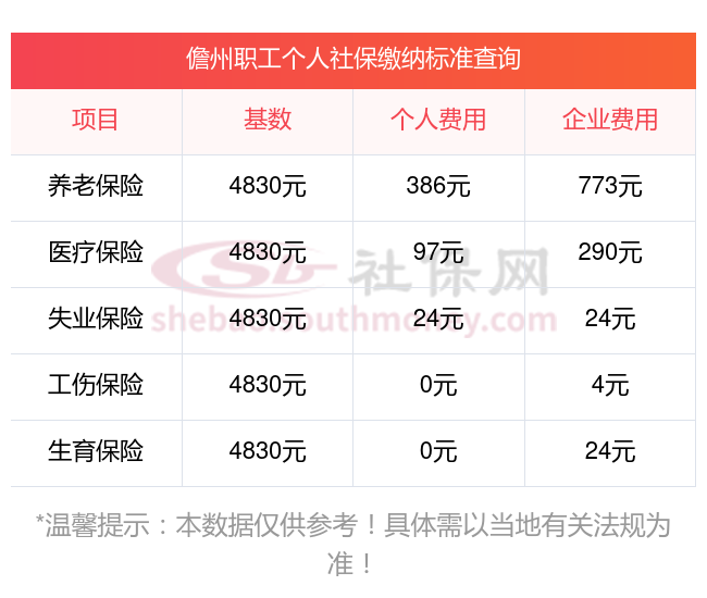 社保缴纳比例一览,社保公司和个人各交多少?下表是2023-2024年儋州社保费用明细参考,新社通app-社保缴费查询工具提供的最新数据如下: