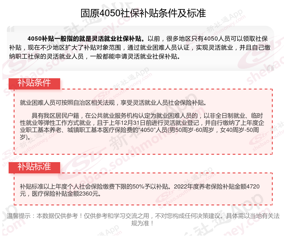 2025固原灵活就业4050社保补贴是一项面向特定年龄段的就业困难人群的社会保险补贴。