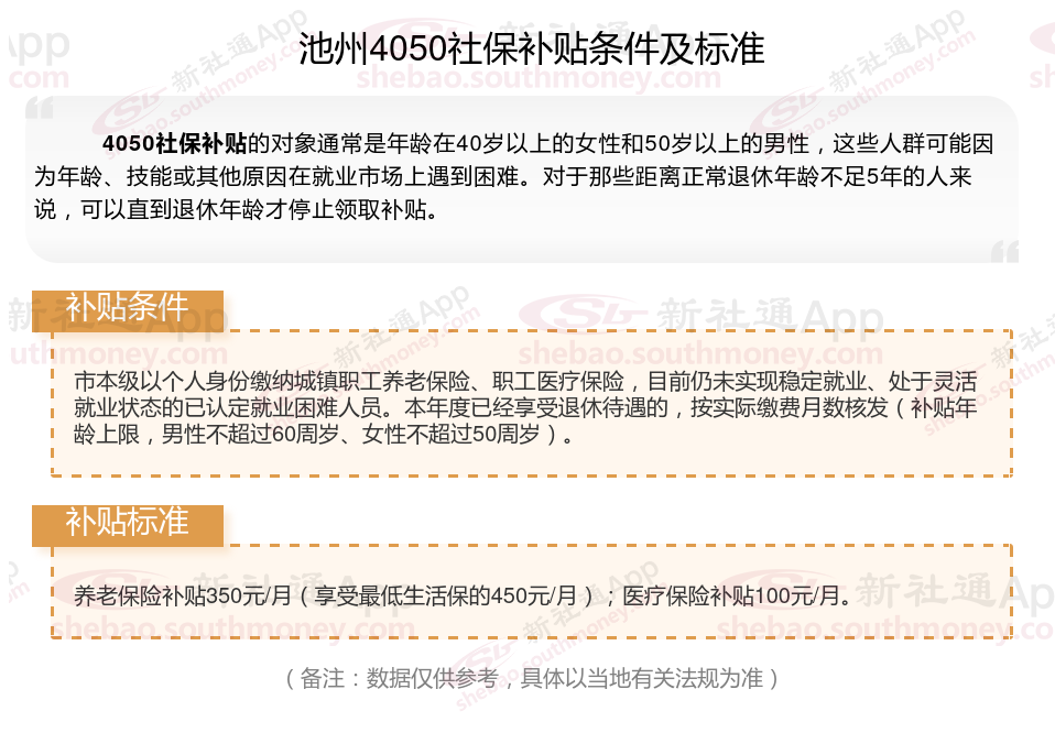一、2023-2024年池州4050社保补贴标准及条件,最新如下