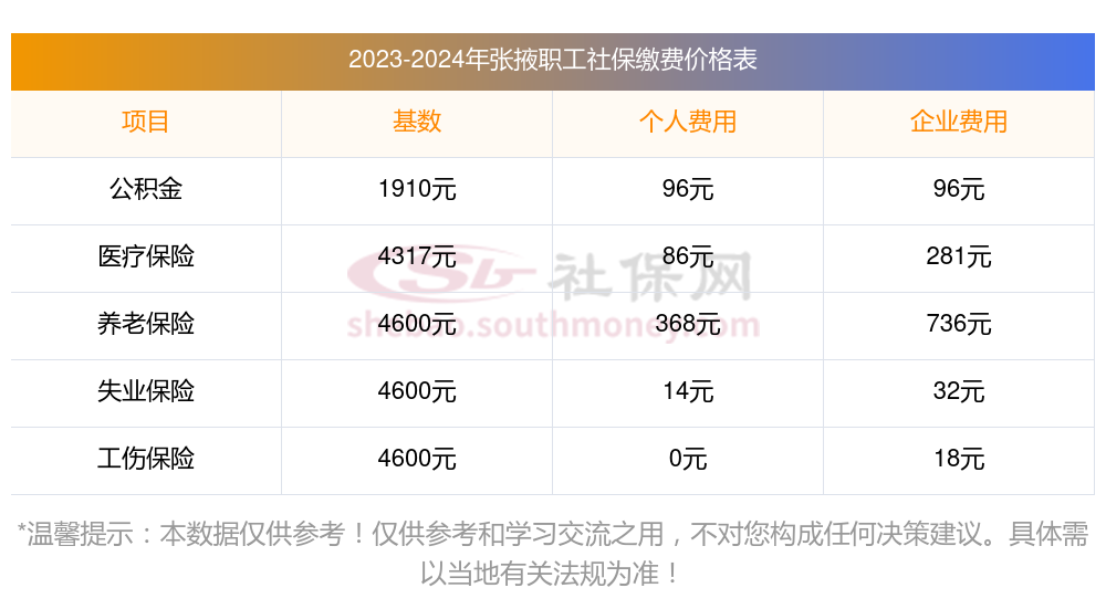 2025年张掖社保缴费多少钱?下表是2024-2025年张掖社保费用明细参考,新社通app-社保缴费查询工具提供的最新数据如下: