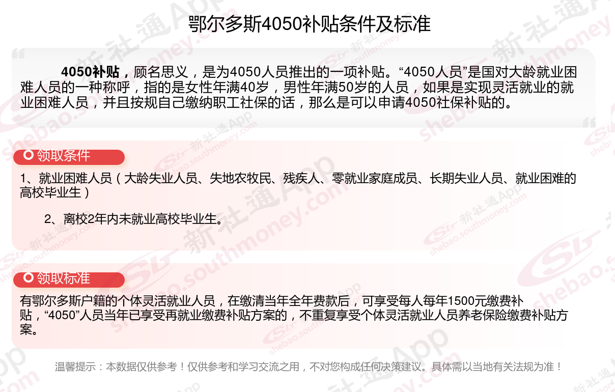 一、鄂尔多斯4050社保补贴标准及条件2023-2024年