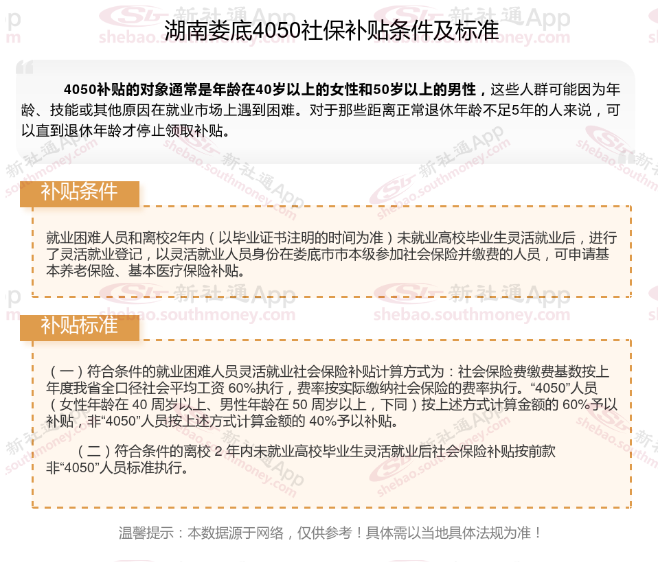 二、湖南娄底4050社保补贴标准及条件2023-2024年,最新如下