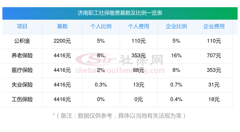2025年济南社保缴费多少钱?下表是2024-2025年济南社保费用明细参考,新社通app-社保缴费查询工具提供的最新数据如下: