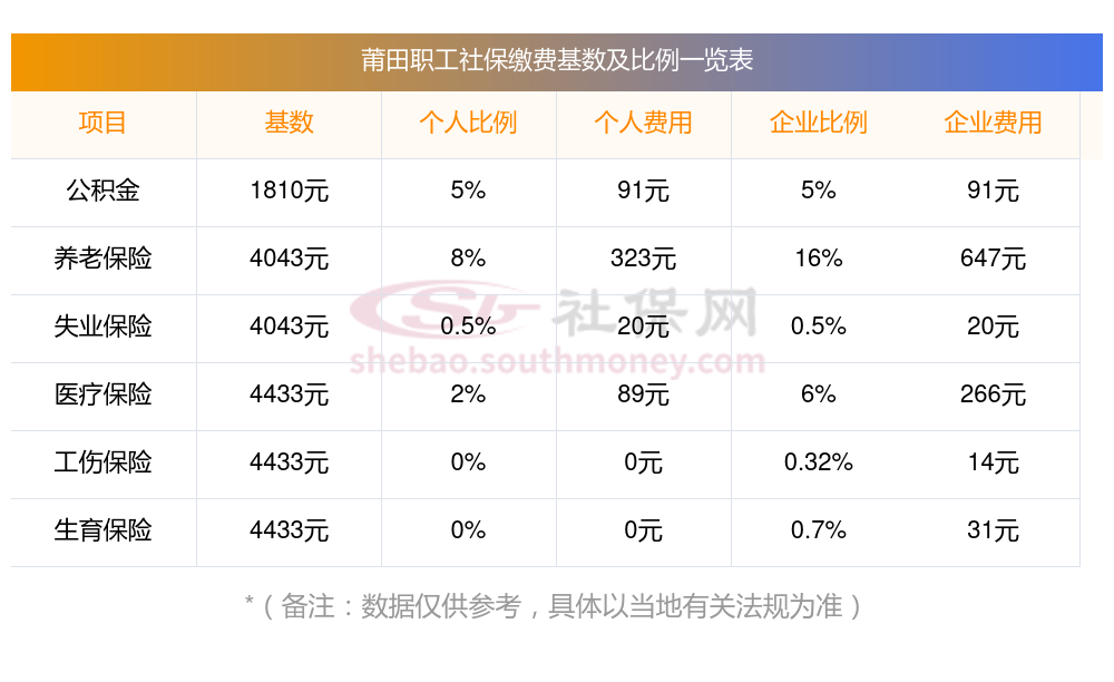 莆田最低配的五险一金自己交多少?下面和社保网一起来了解下2024-2025年莆田最低配社保费用明细参考,新社通app-社保缴费查询工具提供的最新数据如下: