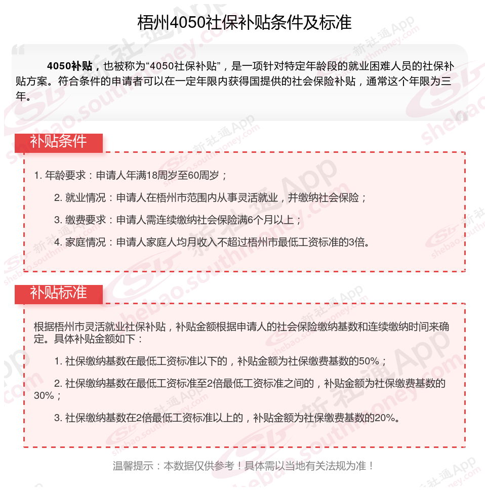 2025梧州灵活就业4050社保补贴是一项面向特定年龄段的就业困难人群的社会保险补贴。