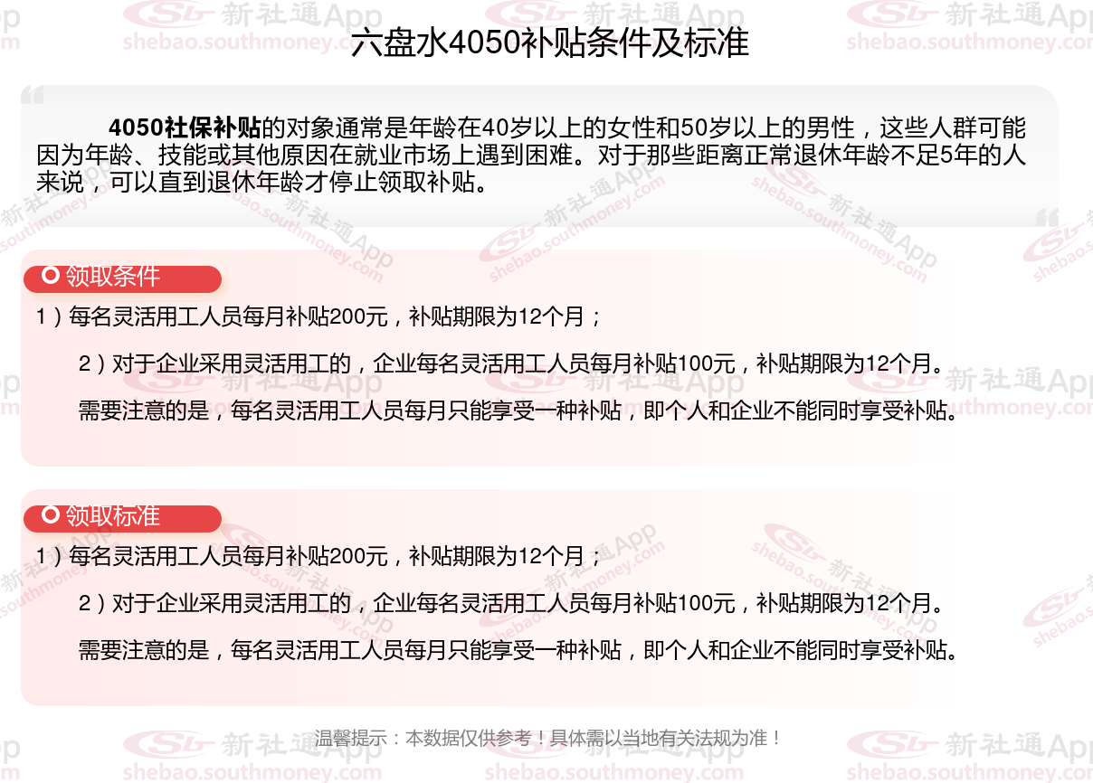 一、2023-2024年六盘水4050社保补贴标准,最新领取条件来了