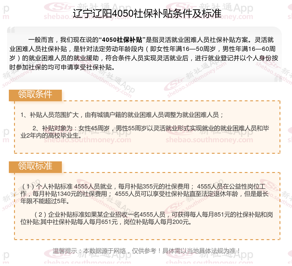多数地区只有4050人员可以领取社保补贴,现在扩大了补贴对象及范围,通过就业困难人员认证,实现灵活就业,并且自己缴纳职工社保的灵活就业人员,一般都能申请灵活就业社保补贴。那么辽宁辽阳4050灵活就业社保补贴标准是多少钱?辽宁辽阳4050社保补贴条件是什么?接下来随新社通APP小编了解一下最新资讯。