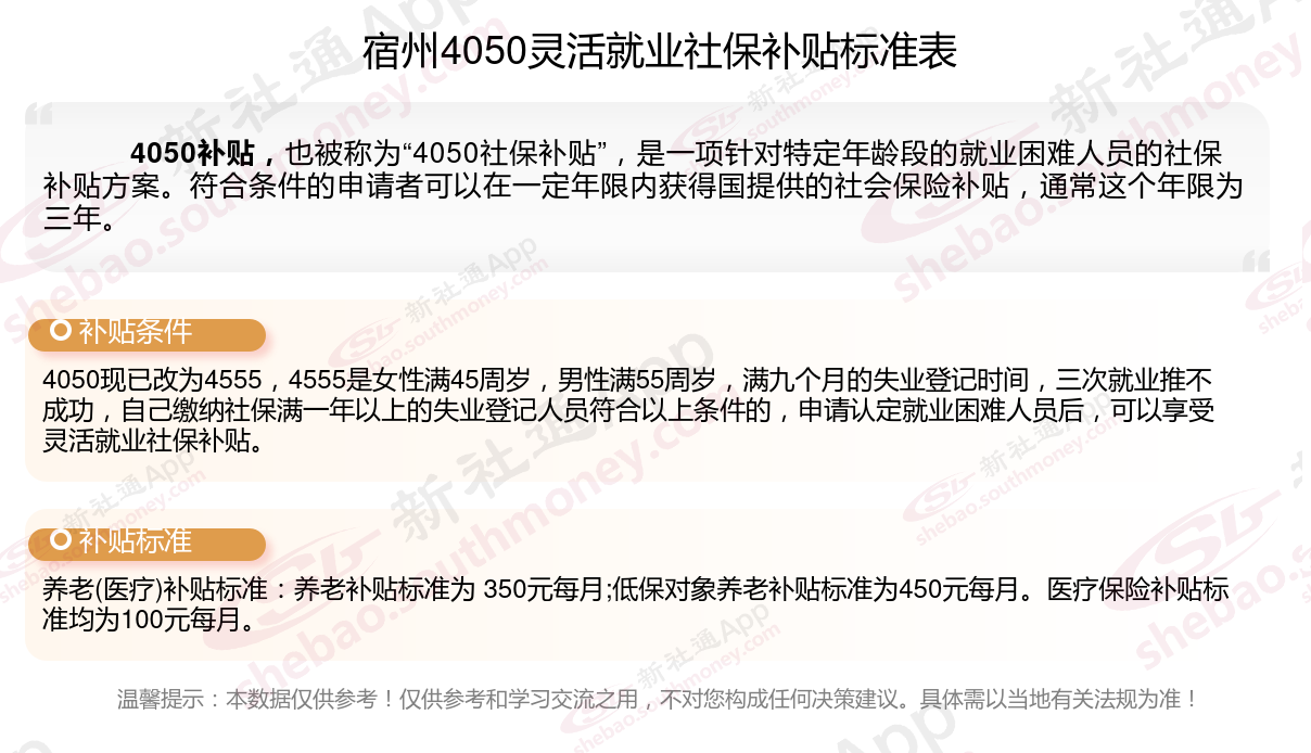 2025宿州4050补贴主要针对的是年龄在40岁以上的女性和50岁以上的男性,这些人群通常因为年龄较大而面临就业困难。
