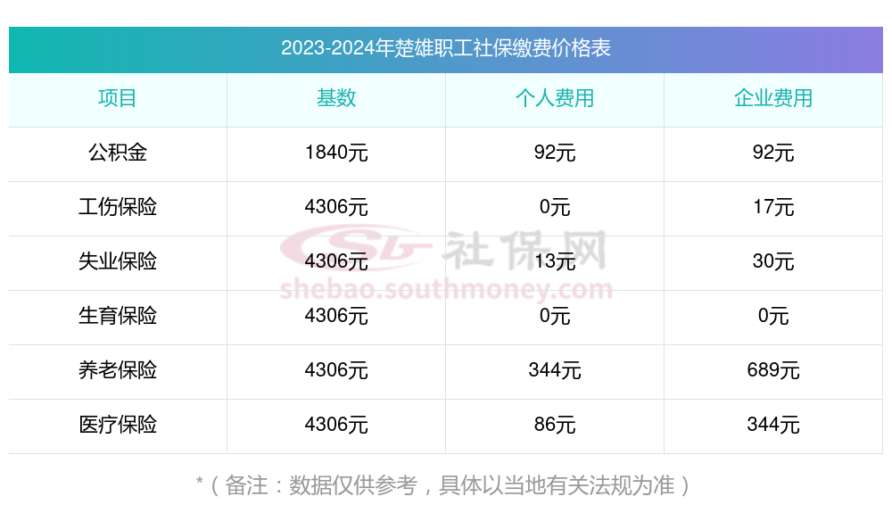 楚雄社保缴纳情况是怎样的?一起和社保网-APP一起来看看下面的明细表: