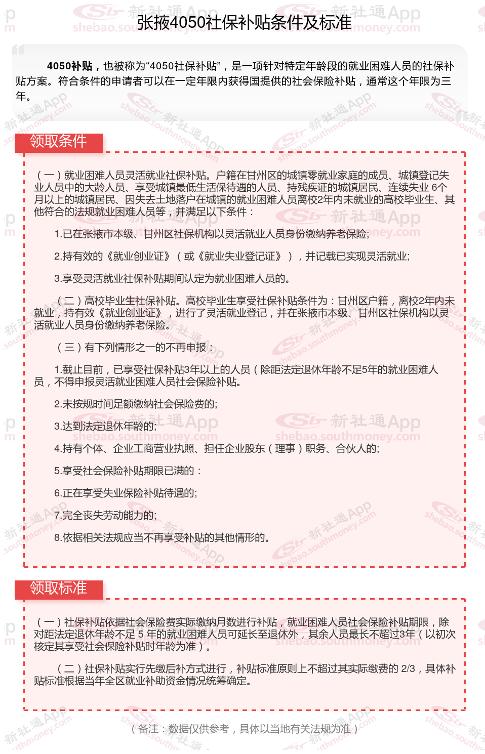 一、张掖灵活就业4050社保补贴标准及条件是什么