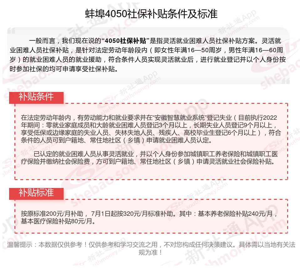 2025蚌埠灵活就业4050社保补贴是一项面向特定年龄段的就业困难人群的社会保险补贴。