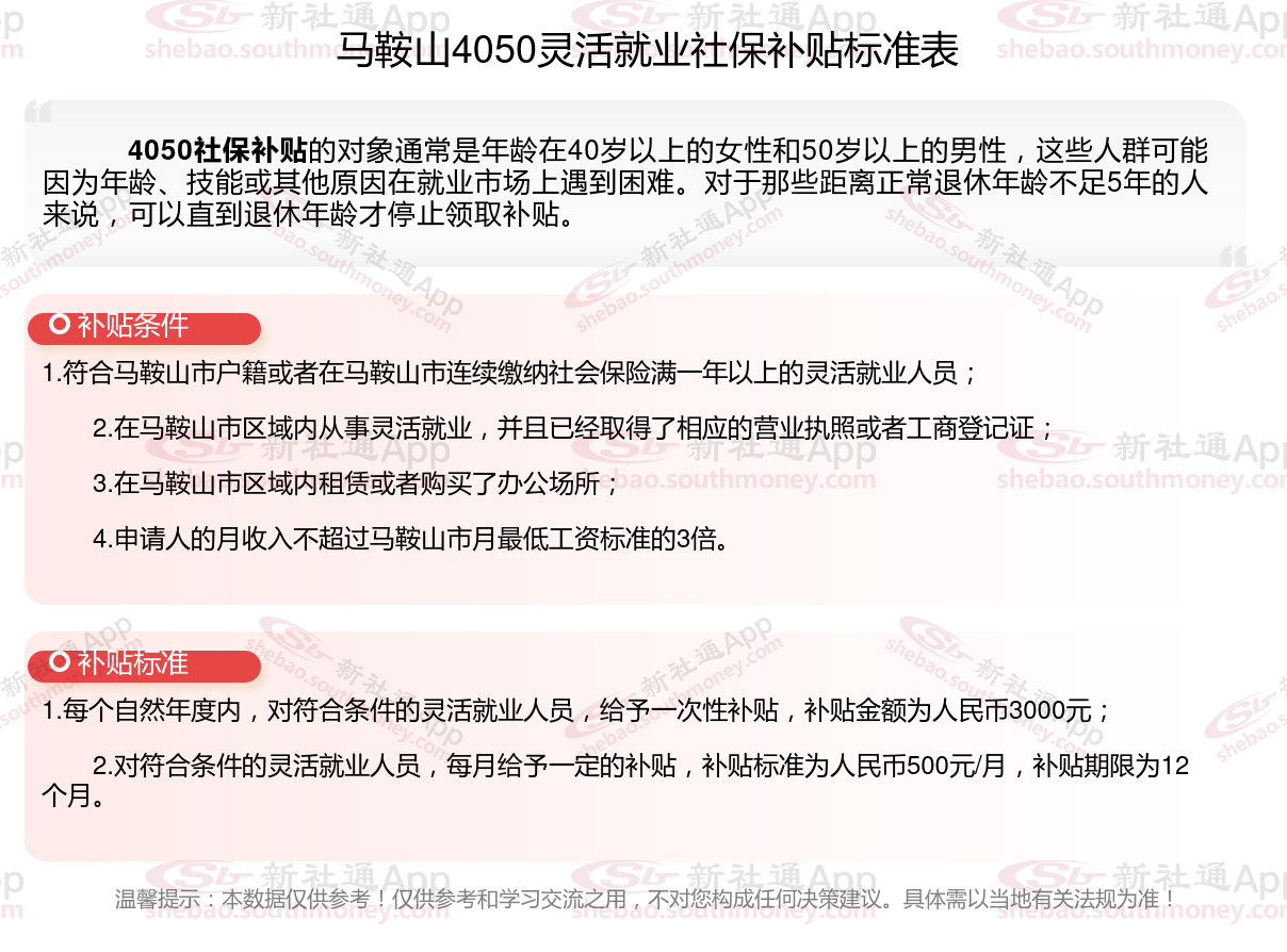 一、2023-2024年马鞍山灵活就业4050社保补贴标准和条件是什么