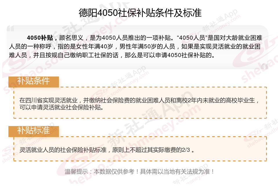 一、2023-2024年德阳灵活就业4050社保补贴标准和条件是什么