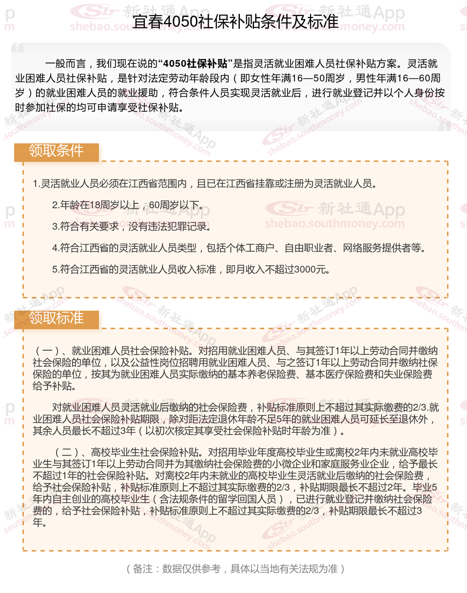 2025宜春4050补贴主要针对的是年龄在40岁以上的女性和50岁以上的男性,这些人群通常因为年龄较大而面临就业困难。