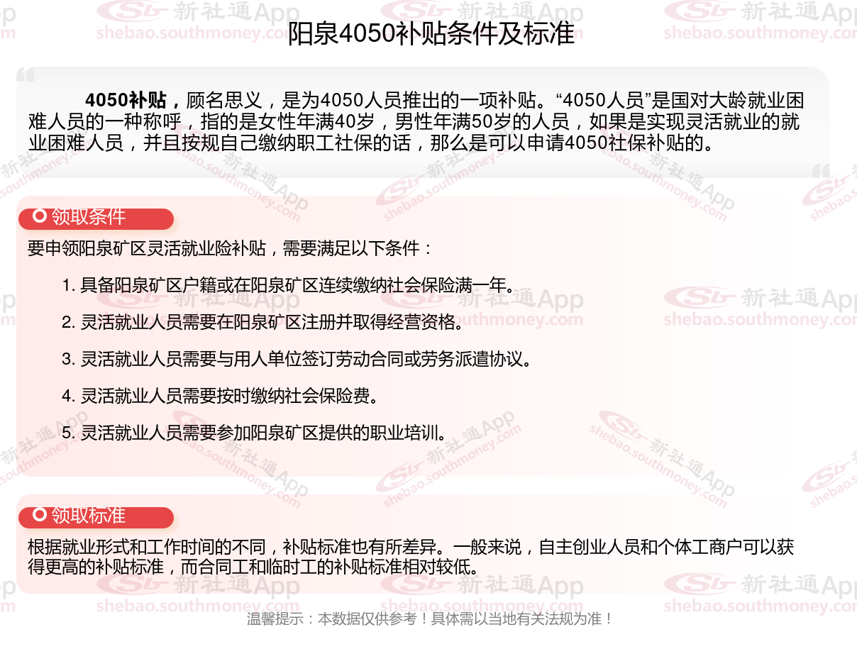 一、阳泉4050社保补贴标准及条件2023-2024年