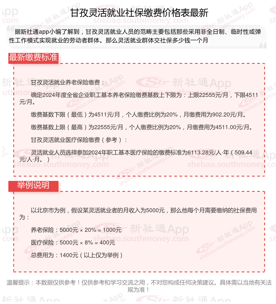 二、甘孜2024年灵活就业社保缴费基数、比例最新消息