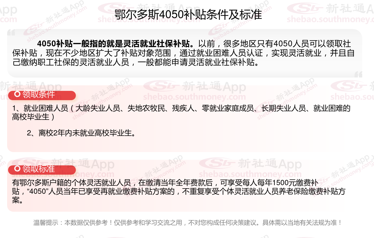 二、鄂尔多斯灵活就业4050社保补贴标准及条件是什么