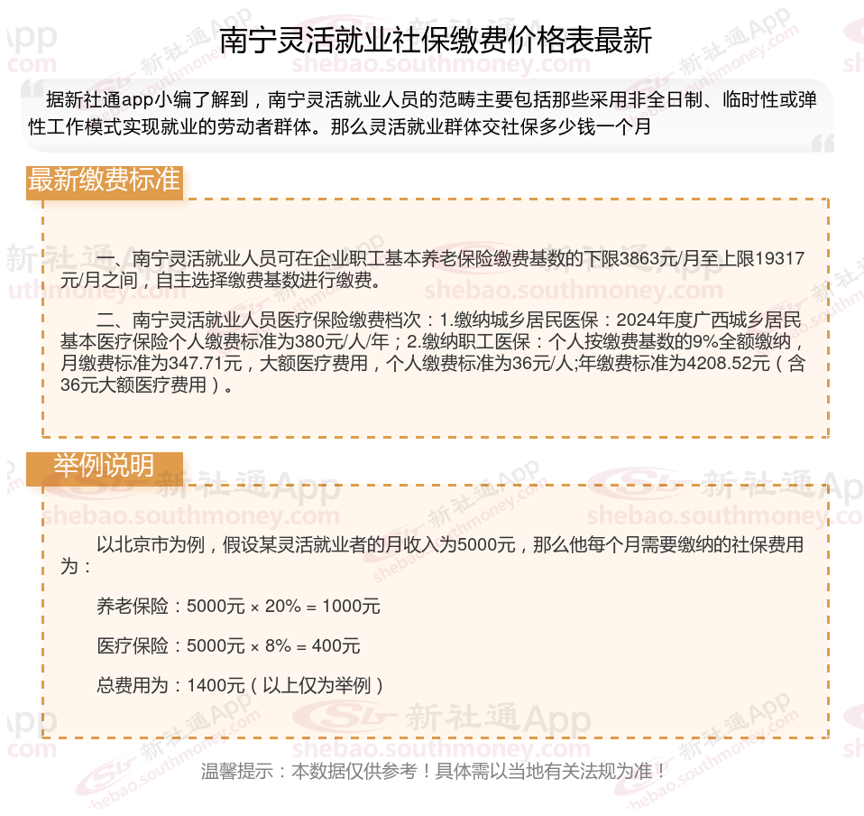 南宁自由职业社保缴纳金额怎么计算?根据新社通app-社保缴费查询工具提供的最新数据如下: