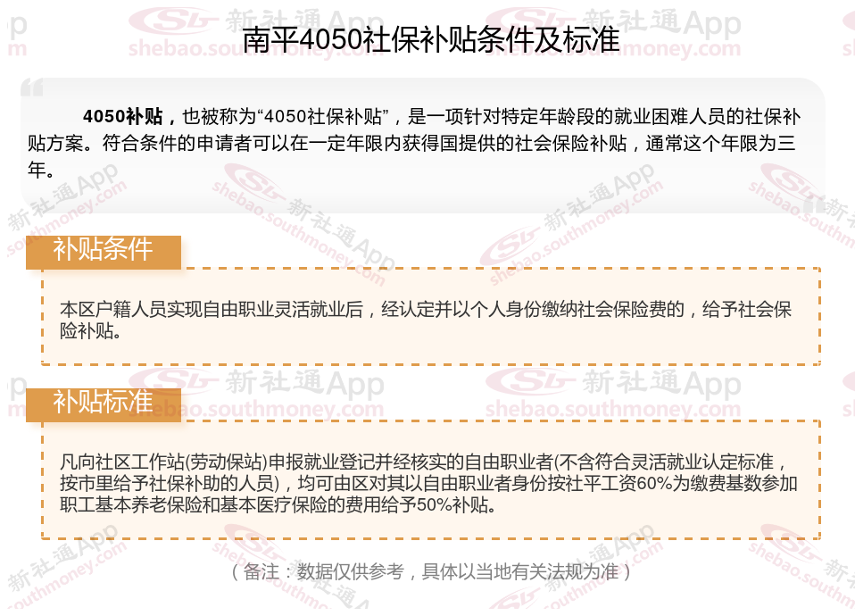 一、南平4050社保补贴标准及条件2023-2024年