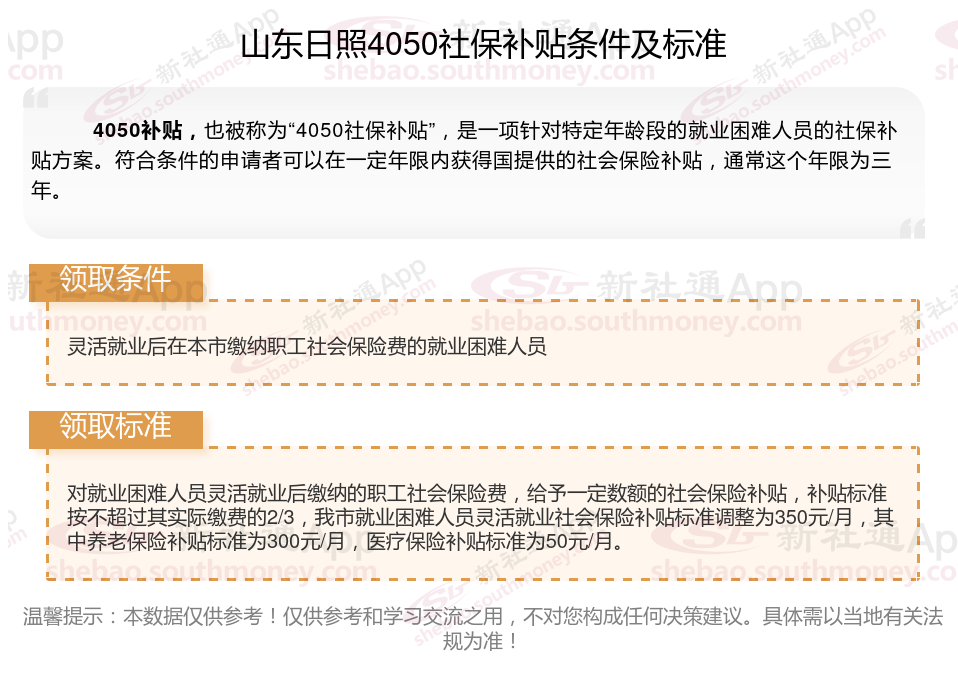 二、山东日照4050社保补贴标准及条件2023-2024年,最新如下