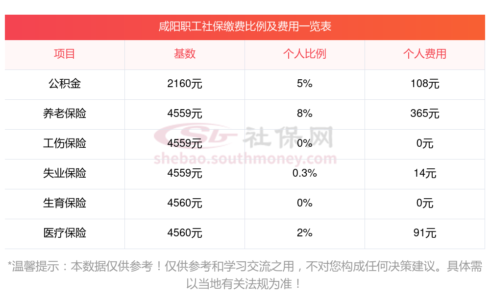 陕西咸阳缴费社保比例一览 社保公司和个人各交多少?下表是2024-2025年陕西咸阳社保费用明细参考,新社通app-社保缴费查询工具提供的最新数据如下: